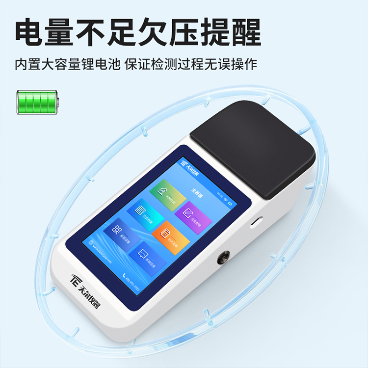 其次看便携与耐用性。选手持式设计,重量≤0.5kg,机身小巧(如 2409082mm),单手可握,方便户外携带。内置大容量锂电池,支持双电源供电(电池 + 适配器),带欠压和充电提醒,户外流动性作业无压力。使用环境适配 5-40℃、湿度≤85%(无冷凝),适应水厂巡检、环保抽检等多场景。